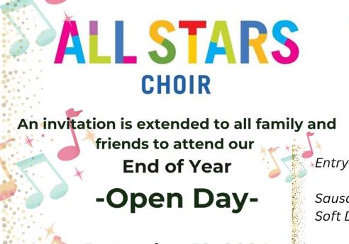 All Stars Choir Open Day gift card.